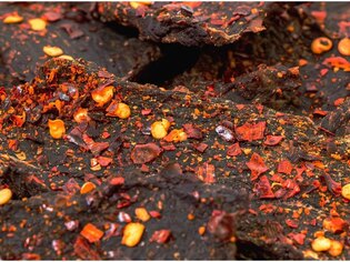 Na výrobu 100 g hotového výrobku bylo použito 267 g syrového hovězího masa. Proces sušení koncentruje chuť i nutriční hodnoty a zároveň prodlužuje trvanlivost produktu bez nutnosti chlazení. Vysoký obsah bílkovin oceníte na cestách, v přírodě i během fyzicky náročného dne.