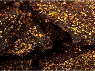 Kombinace brusinek, červeného vína a hub dodává masu charakteristickou hloubku a přirozenou vyváženost. Brusinky přinášejí jemnou sladkokyselou linku, zatímco sušené houby a směs koření doplňují chuť o zemitější tón. Výsledkem je výrazná, ale stále dobře vyvážená varianta sušeného masa vhodná pro ty, kdo hledají něco jiného než klasické barbecue nebo pálivé příchutě.