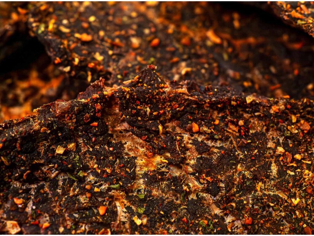 Na výrobu 100 g hotového výrobku bylo použito 240 g syrového hovězího masa. Proces sušení koncentruje chuť i nutriční hodnoty a zároveň prodlužuje trvanlivost produktu bez nutnosti chlazení. Vysoký obsah bílkovin oceníte na cestách, v přírodě i při fyzicky náročném dni.