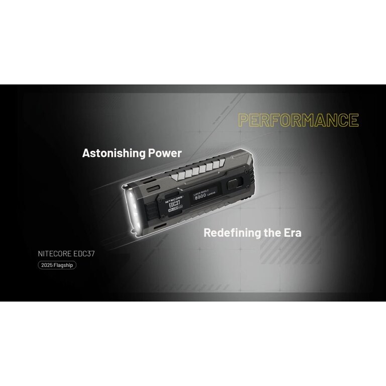 Nitecore EDC37 spojuje brutální svítivost s kompaktním tělem, takže zvládne každodenní nošení i náročnou práci v terénu. Nabízí sílu, která okamžitě otevře prostor před vámi, a přitom zůstává spolehlivě ovladatelná.
