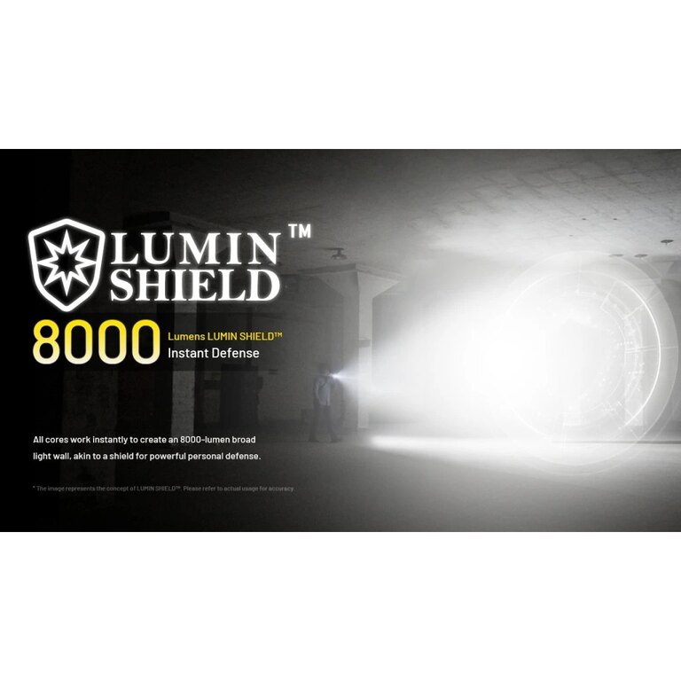 Měřeno dle standardu ANSI FL 1 v laboratorních podmínkách, za použití integrovaného dobíjecího Li-ion akumulátoru 8 000 mAh, při teplotě 26 °C a určité vlhkosti. Hodnoty se mohou lišit v závislosti na okolních podmínkách nebo způsobu použití svítilny (použití jiného zdroje napájení není možné).