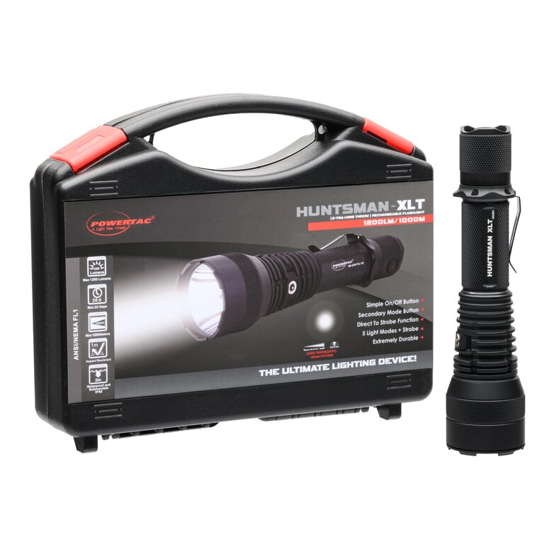 LED svítilna Powertac Huntsman XLT představuje opravdovou profesionální svítilnu, která Vás zaručeně nezklame. Je ideální pro vojenské či policejní akce – ale i pro jakoukoli jinou příležitost, při které byste se rádi vyhnuli situaci, kdy svítilna zhasne a vy zůstanete bez světla. V jednom z režimů vydrží tato svítilna fungovat až 20 dní!
