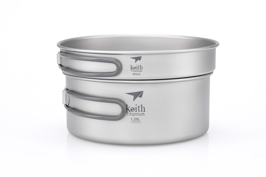 Chcete v přírodě nebo campu smažit, péct nebo vařit? Není problém! Nabízíme vám vynikající, univerzální a plně skladnou titanovou 2 dílnou sadu Cook Set Keith® / 800 ml, 1.2 l.