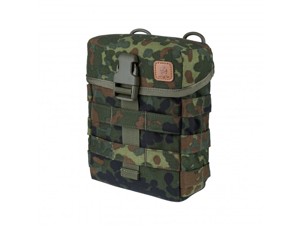 Přední a boční strany doplňuje MOLLE kompatibilní popruhovina, takže lze kapacitu snadno rozšířit o další kapsy. Zadní MOLLE panel umožňuje upevnění k batohu nebo jiné výstroji, případně k opasku pomocí dvou D kroužků.