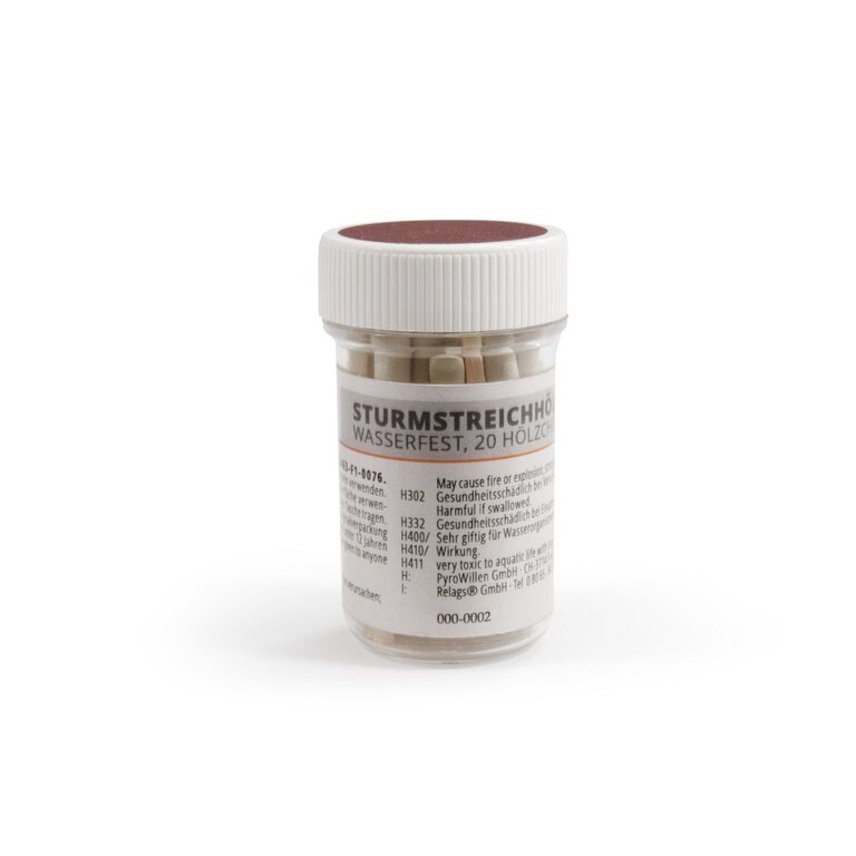 Zápalky jsou v pevné plastové krabičce se šroubovacím uzávěrem, který drží obsah bezpečně uvnitř i při pohybu v terénu. Díky škrtací ploše na víčku je zapálení hned po ruce, bez hledání dalšího vybavení. Celek je navržený tak, aby byl obsah chráněný, ale zároveň okamžitě použitelný.