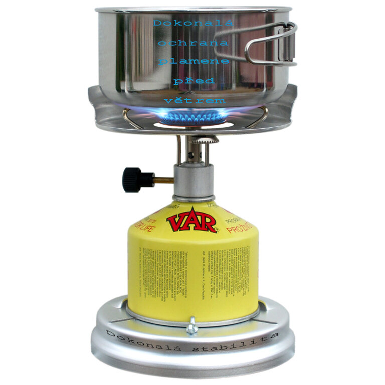 | Další specifikace | Snižuje dobu varu a tedy spotřebu plynu o cca 25 % S kartuší VAR CGV 425 lze použít jako stabilizátor (podpěra zamezující převrhnutí) |
