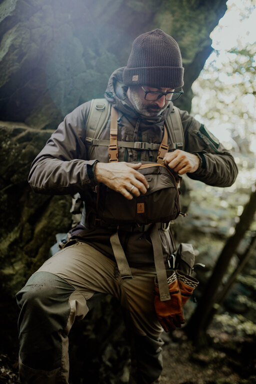 Helikon-Tex Yukon není jen o materiálu. Oceníte určitě také kapuci s vícebodovým nastavením, dvoucestný zip, osm kapes a paracordová poutka nebo MOLLE buňky pro připevnění vybavení. V lese poslouží při zakládání ohně nebo sběru dřeva, ve městě zvládne vítr i déšť.