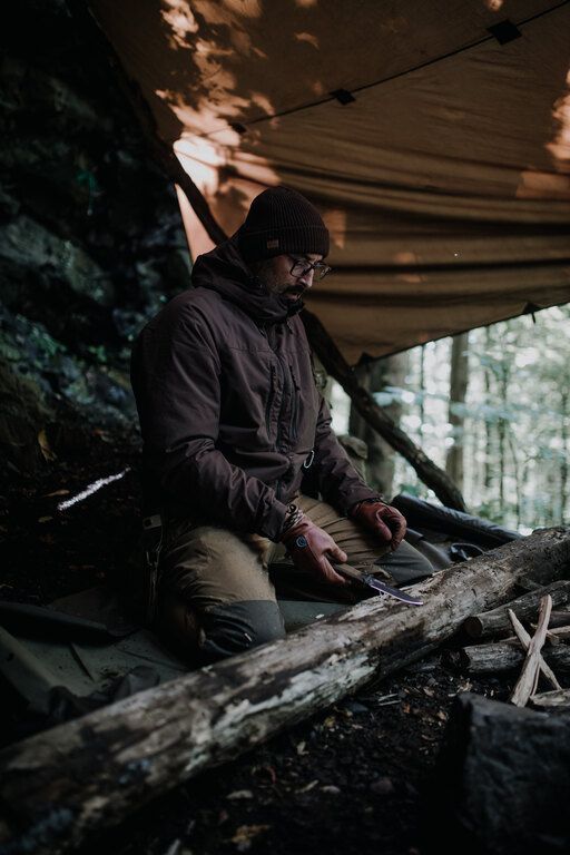 Uvnitř hřeje Climashield Apex, který drží teplo, i když zvlhne. Zvenku kryje Duracanvas – tkanina, která se nezalekne ohně, trní ani větví a navíc ji lze navoskovat. Společně tvoří kombinaci, na kterou je spoleh i při dlouhých dnech v terénu.